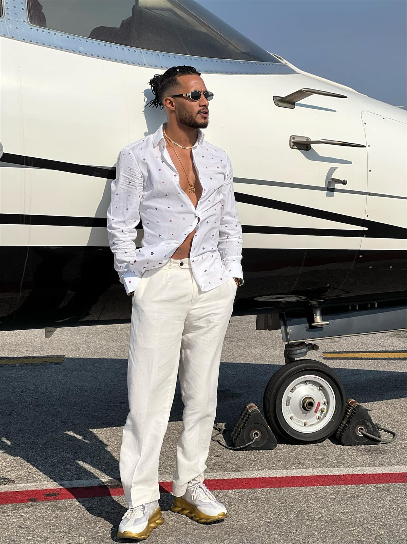 وظهر محمد رمضان في الفيديو الذي نشره على حسابه الشخصي بـ انستجرام، بلوك جديد، حيث بتسريحة شعر جديدة وهي الرستا أثناء ركوب الطائرة، وعلق قائلًا على الفيديو: رايح أولع اليونان وراجع على طول From north coast to the biggest concert in Mykonos 28/7 ثقة في الله نجاح.