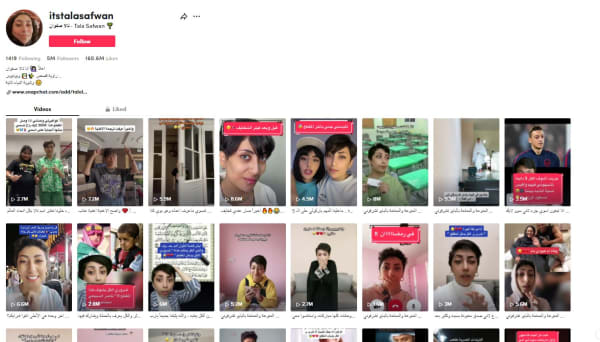 2- واشتهرت تالا صفوان بتقديمها محتوى تفاعلي جذاب، والذي يحظى بإعجاب واسع من جانب رواد مواقع التواصل الاجتماعي، حتى أن بعض فيديوهاتها على موقع التيك توك تتجاوز الـ 6 ملايين مشاهدة.
