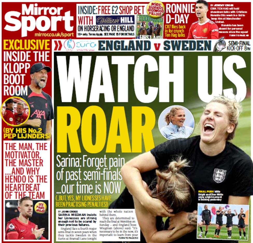 سلطت ميرور الضوء في غلافها على عودة كريستيانو رونالدو إلى تدريبات نادي مانشستر يونايتد أمس، وقالت إن رونالدو يرغب في مغادرة النادي، ويناقش مستقبله مع الإدارة في ظل تمسك إريك تين هاج به.