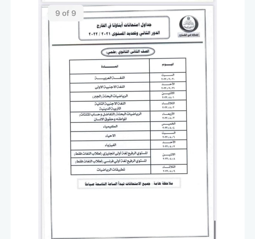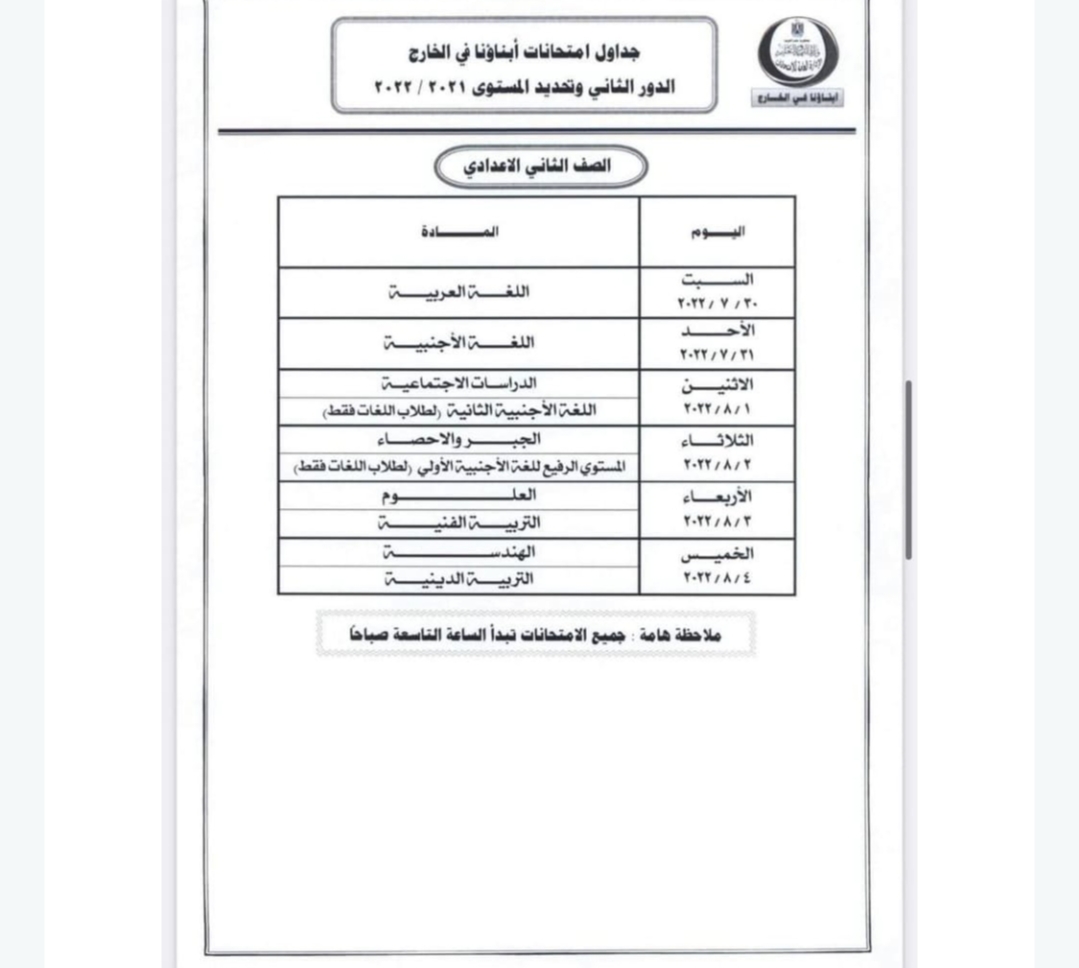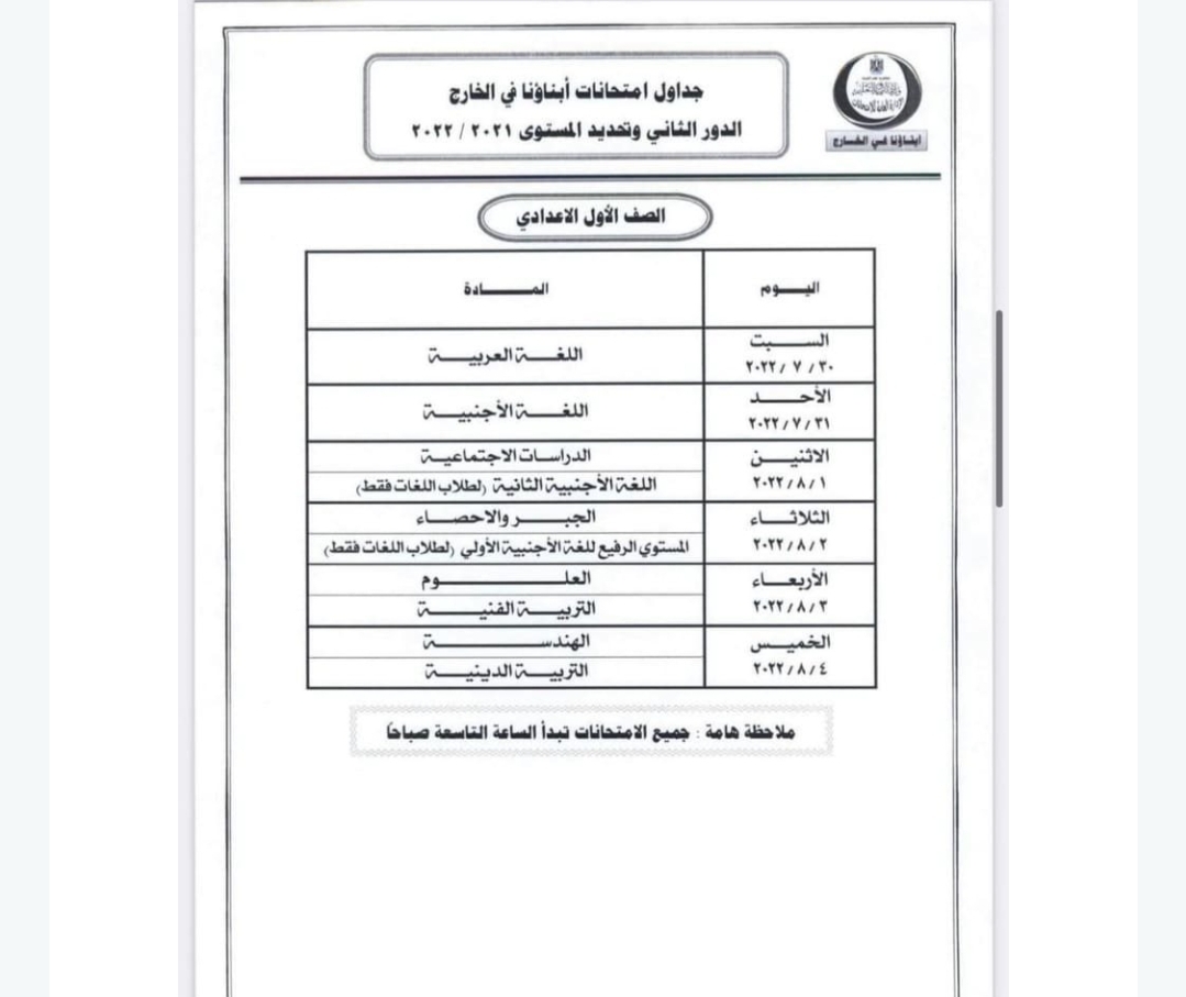 ننشر جدول الدور الثاني وتحديد المستوى لطلاب أبناؤنا في الخارج | صور