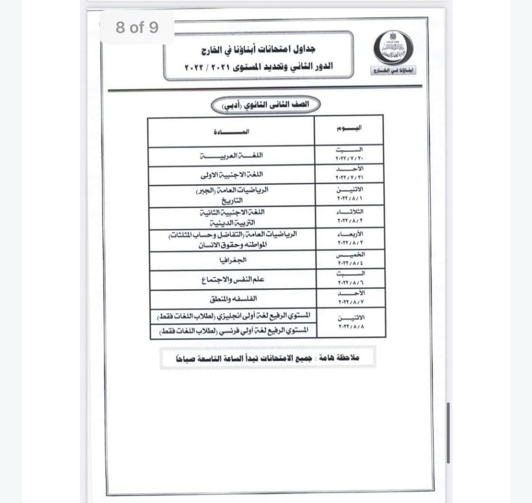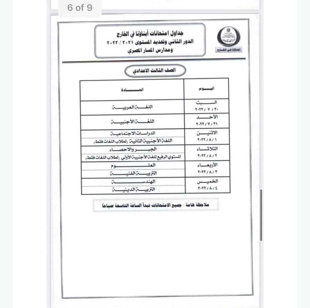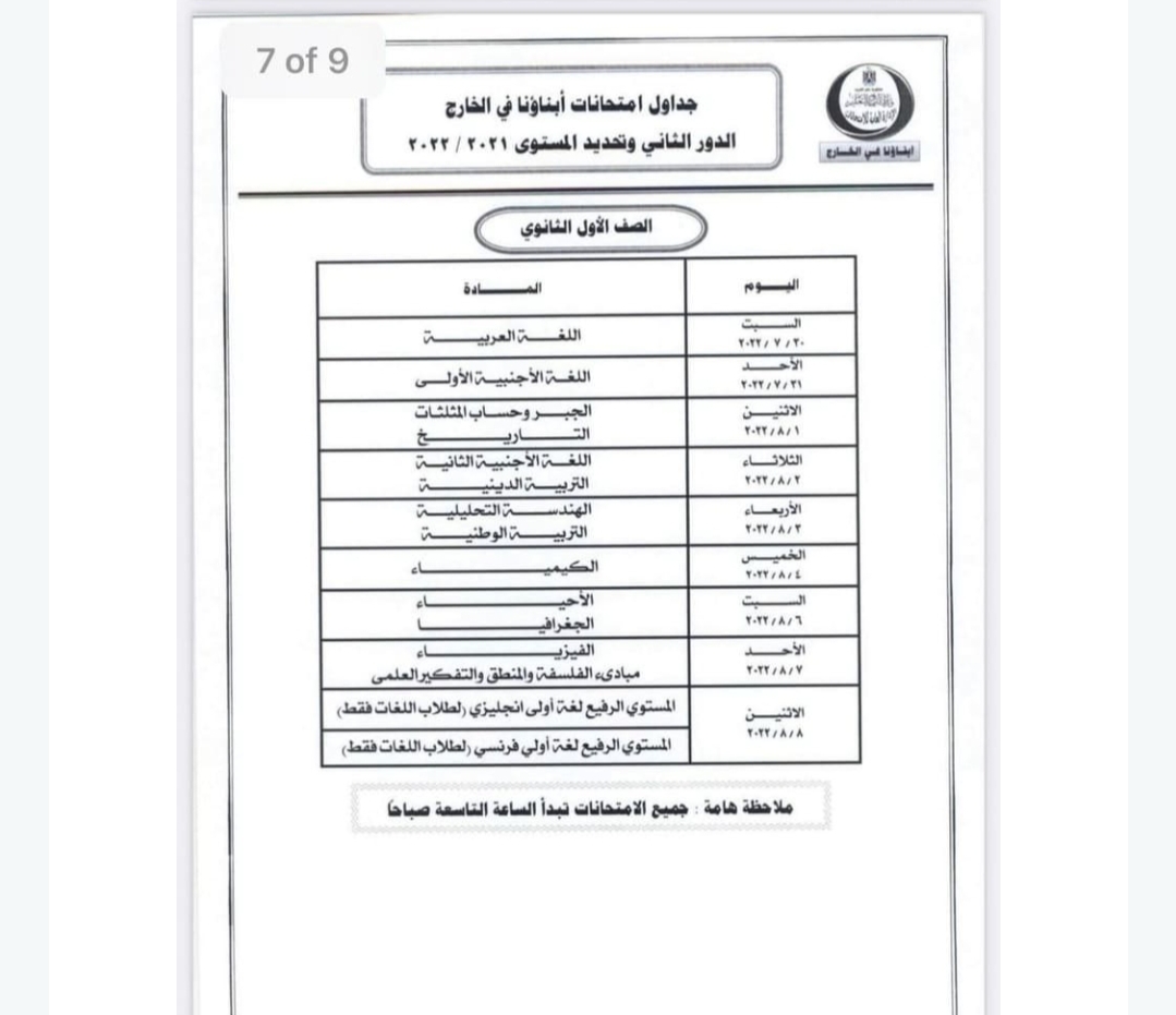 ننشر جدول الدور الثاني وتحديد المستوى لطلاب أبناؤنا في الخارج | صور