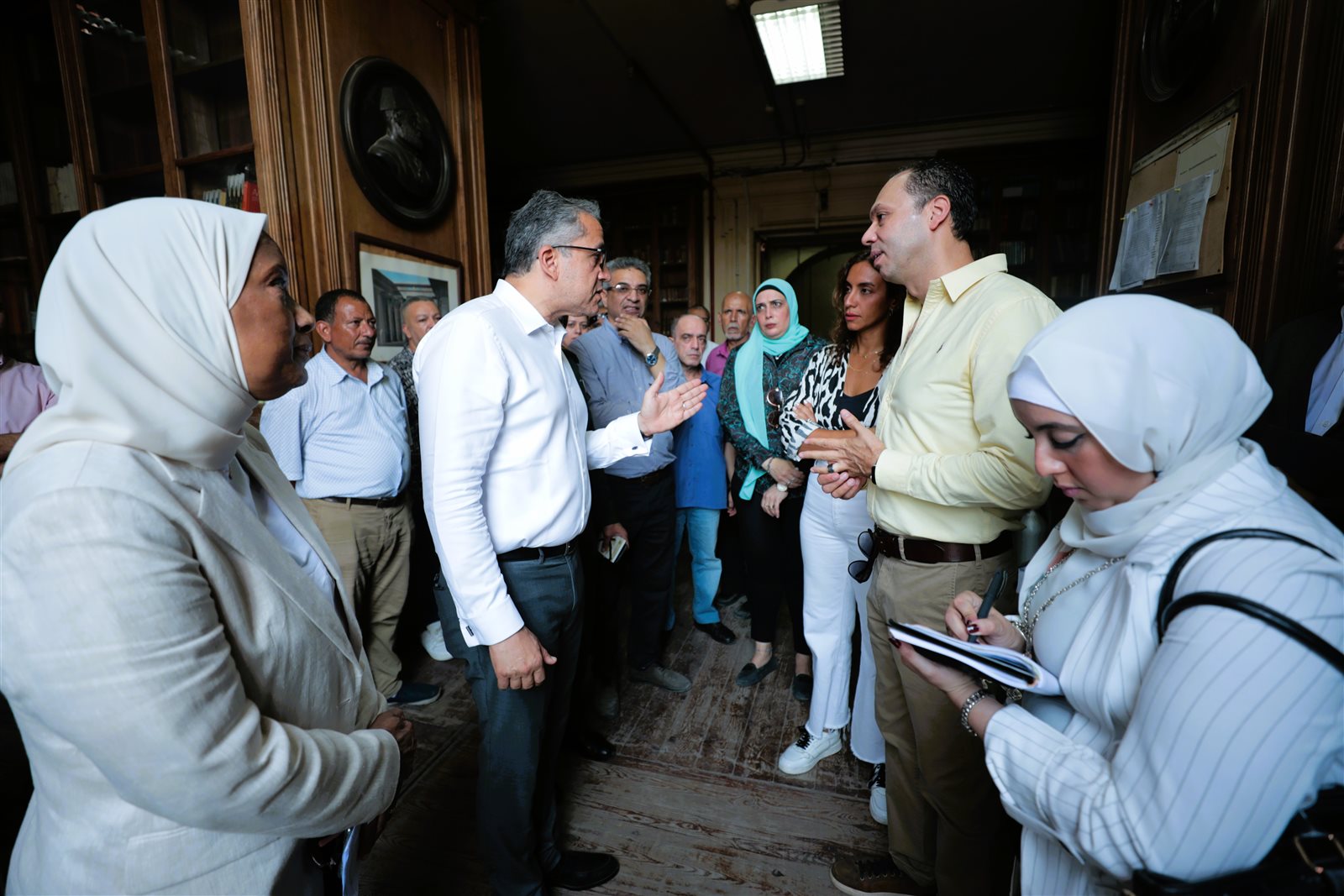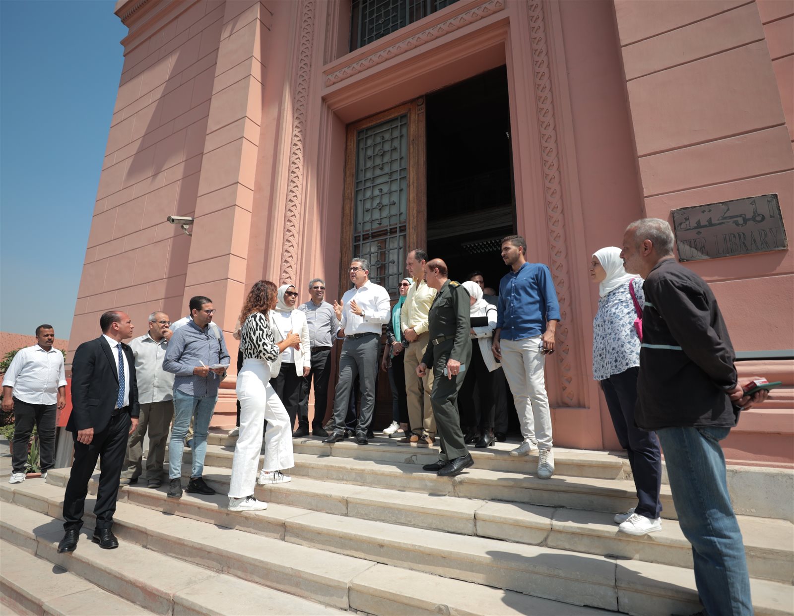 ورافق الوزير خلال الجولة العميد مهندس هشام سمير مساعد الوزير لمشروعات الآثار والمتاحف، والدكتور الطيب عباس مساعد وزير السياحة والآثار للشئون الأثرية بالمتحف المصري الكبير، ومؤمن عثمان رئيس قطاع المتاحف بالمجلس الأعلى للآثار، وصباح عبد الرازق مدير عام المتحف المصري بالتحرير، والدكتور حسن سليم أستاذ الآثار المصرية بجامعة عين شمس، والدكتور جمال البلم مدير عام المكتبة، وممثلي الشركة المنفذة للأعمال.