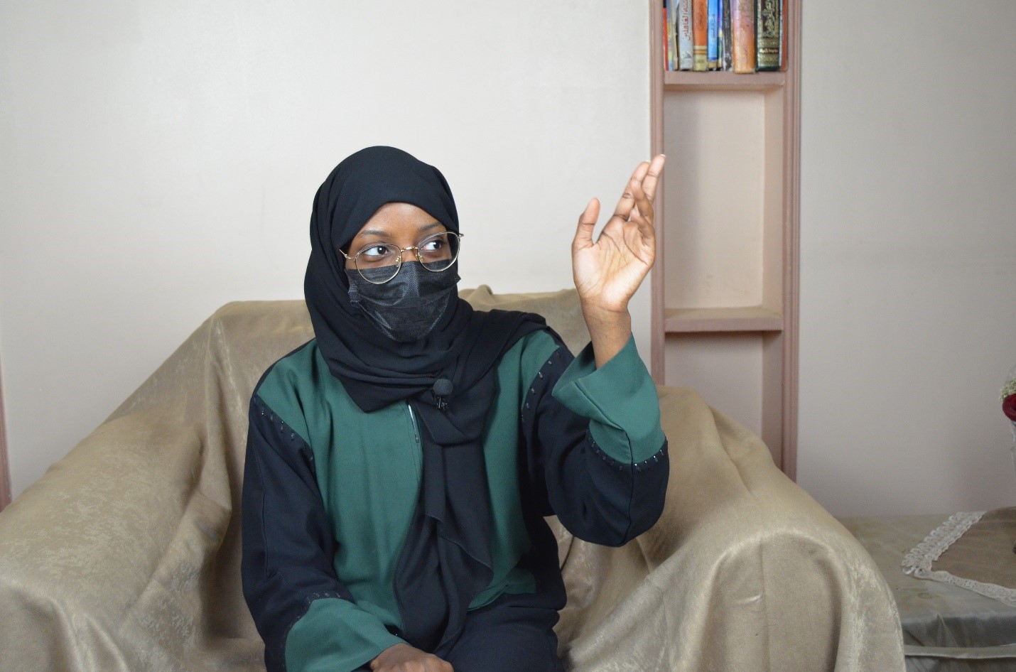 فاطمة لا تتقن العربية لذا كانت تتحدث إلينا بواسطة ترجمة شقيقتها جواهر.