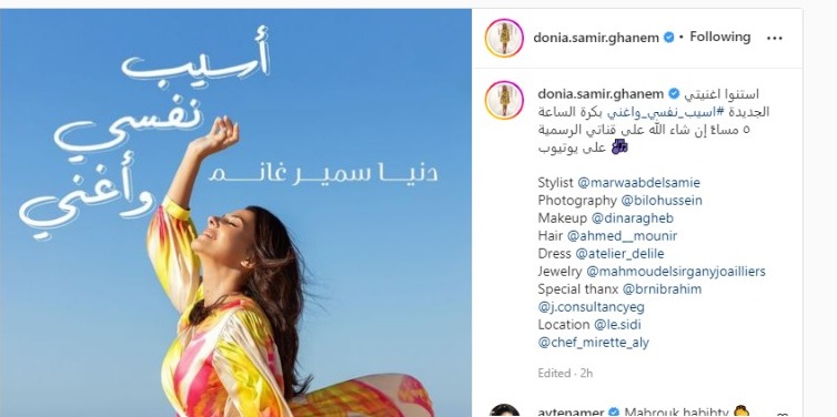 وشاركت دنيا سمير غانم متابعيها بـ بوستر أغنيتها الجديدة، وذلك عبر حسابها الرسمي عبر انستجرام، وعلقت قائلة: استنوا أغنيتي الجديدة أسيب نفسي وأغني الساعة 5 مساءً على قناتي الرسمي على موقع يوتيوب.