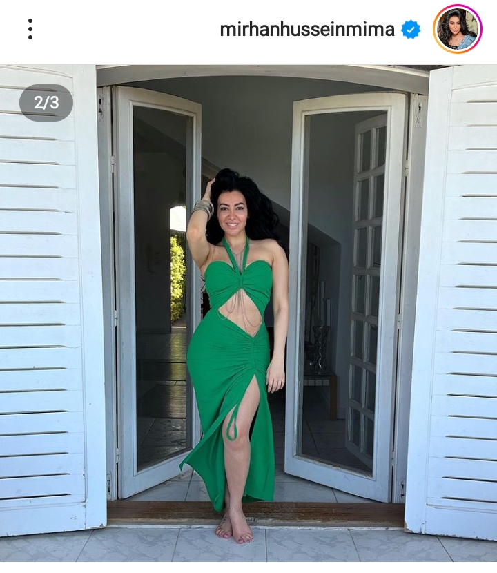 وعلقت ميرهان حسين، على الصور، قائلة: المزيد من الحب للخضرة، حيث ظهرت وهي ترتدي فستانًا بالون الأخضر - مكشوفًا من البطن.
