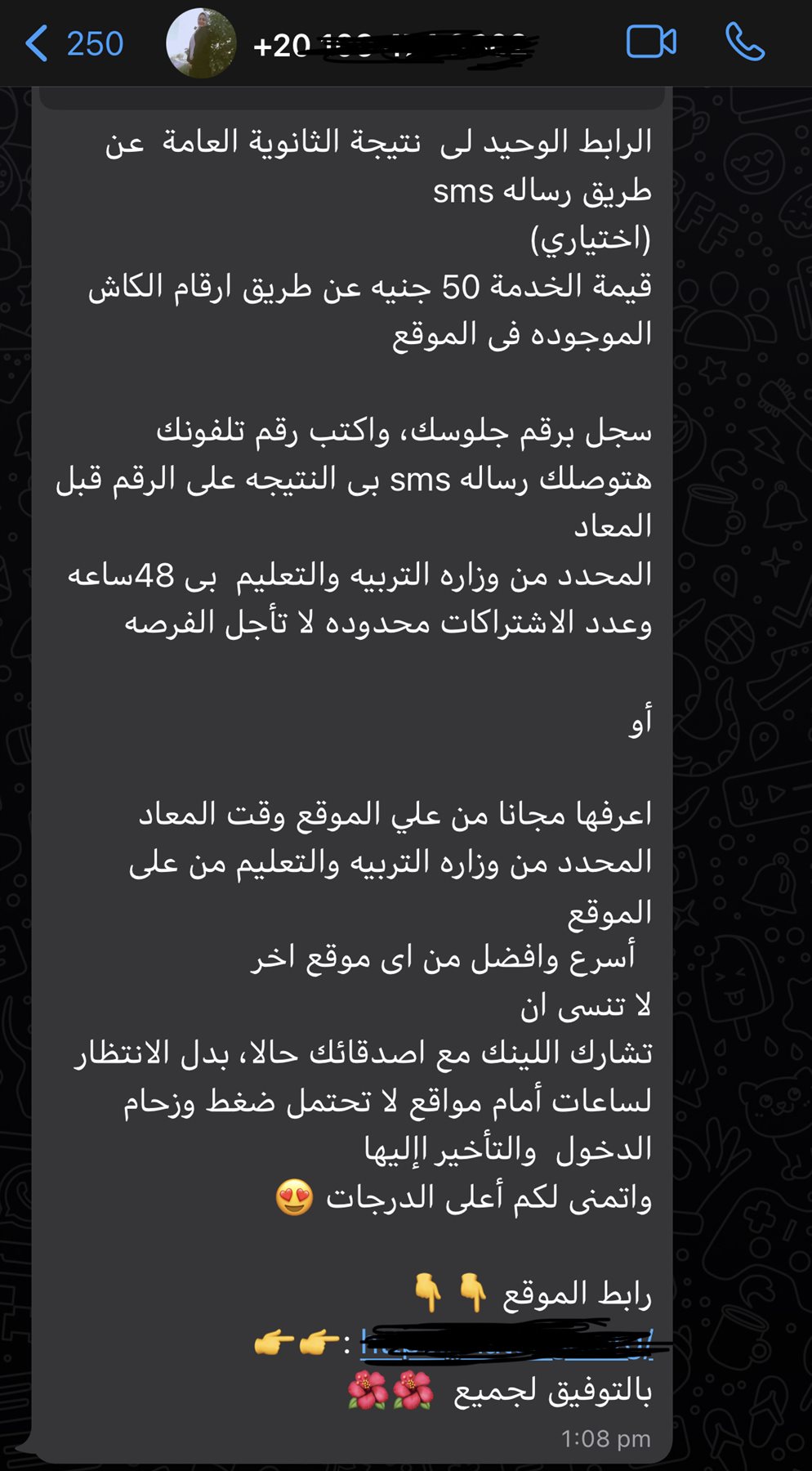 انتشرت عبر جروبات طلاب الصف الثالث الثانوي، رسالة بهدف الاحتيال على الطلاب لدفع مبالغ مالية مقابل حجز نتيجة الثانوية العامة 2022 لمعرفة النتيجة قبل إعلانها رسميا بـ 48 ساعة.