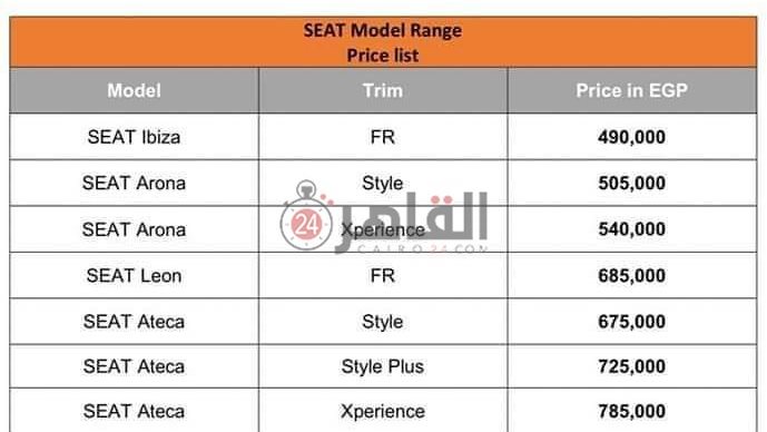 ووفقًا للقائمة السعرية الجديدة والمعلنة من جانب وكيل علامة سيات الإسبانية في مصر، جاءت أحدث أسعار سيارات سيات في مصر كالآتي: