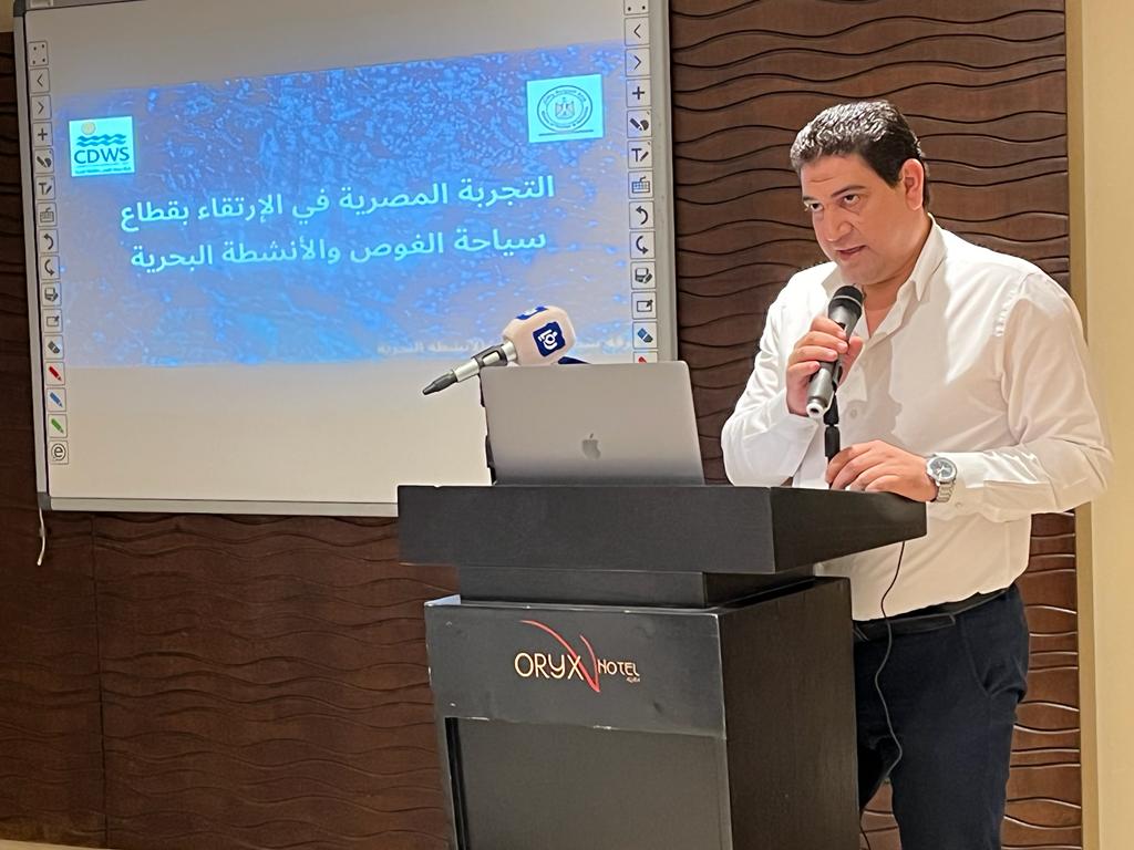 وخلال هذه اللقاءات وورشة العمل تم إلقاء الضوء على التجربة المصرية في منتج سياحة الغوص وما تحقق من تنمية في هذا المنتج من خلال التعاون القائم والمثمر بين وزارة السياحة والآثار وغرفة سياحة الغوص والأنشطة البحرية حيث يتم العمل على العديد من الملفات ذات الشأن والتي من بينها إعداد وتطبيق برامج ومشروعات الحفاظ على البيئة البحرية، ومعايير الأمان والسلامة الدولية (الأيزو) لضمان الجودة والارتقاء بالخدمات المقدمة للسائحين المهتمين بهذا المنتج، والتدريب ورفع كفاءة العاملين بمجال سياحة الغوص.