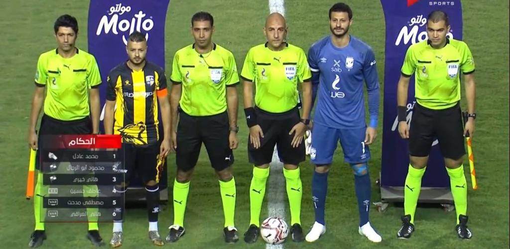 طاقم تحكيم مباراة الأهلي يغير زيه لتعارضه مع لون تيشيرت لاعبي المقاولون العرب