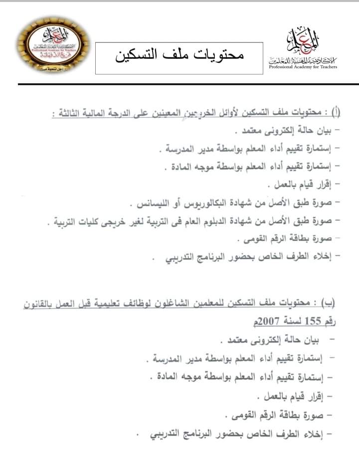 الأكاديمية المهنية للمعلمين تعلن محتويات ملف التسكين لأوائل الخريجين
