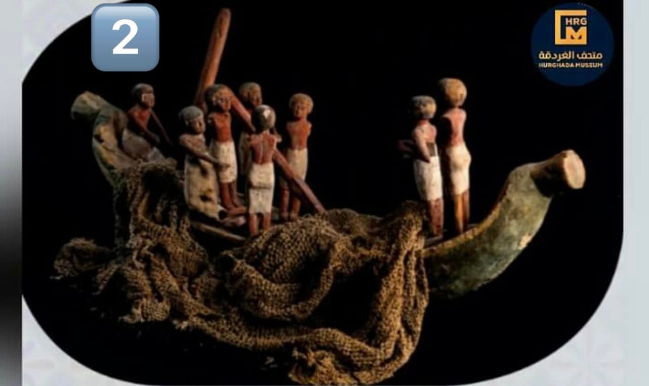 ونشر متحف الغردقة؛ صور خاصة بالقطعة الأثرية، والقطعة الأولى عبارة عن نموذج لجسم قارب خشبي، وذلك نظرًا لوجود نهر النيل والذي يمتد من الجنوب إلى الشمال ويمثل شريان الحياة، حيث اهتم المصريين القدماء بصناعة القوارب الخشبية من خشب السنط المحلي أو خشب الأرز المستورد من لبنان.