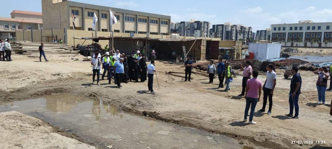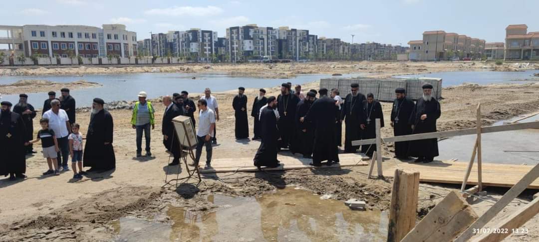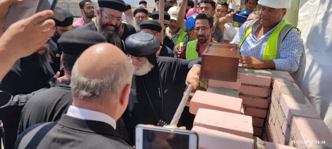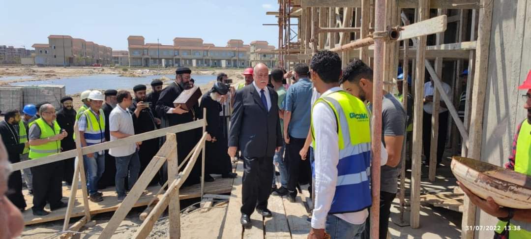 وضع الأنبا داود، أسقف المنصورة وتوابعها، اليوم، حجر أساس كنيسة الشهيد مار مينا والبابا كيرلس السادس بمدينة المنصورة الجديدة.