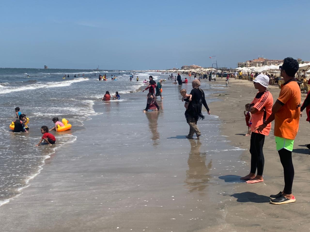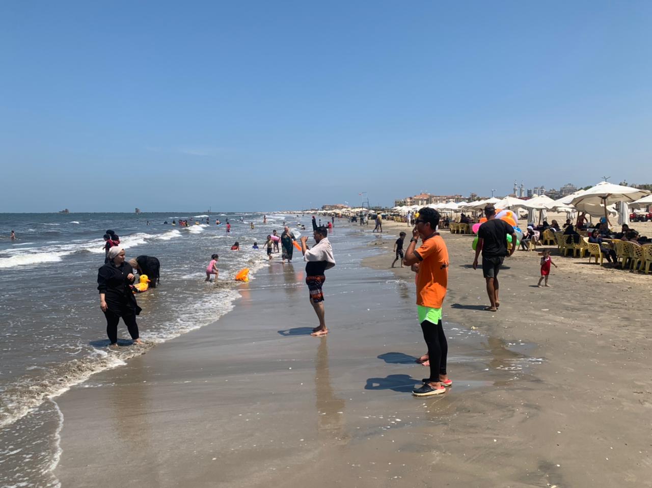 وحرص المصطافون من أبناء بورسعيد والمحافظات المجاورة على السباحة في شاطئ المتوسط رغم الأمواج، وحرص آخرون على مُمارسة الألعاب المائية والشاطئية والنحت على،الرمال والجلوس على الشماسي، وسط حالة من الفرحة والسعادة.