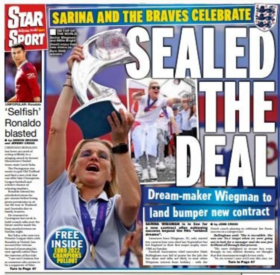 عنونت ستار سبورت في غلافها اليوم بـ أنانية رونالدو، حيث انتقدت الصحيفة تصرف النجم البرتغالي بعد مغادرته ملعب أولد ترافورد فور استبداله، ورغبته في التواجد بملعب اللقاء طوال المباراة أمام رايو فاليكانو.