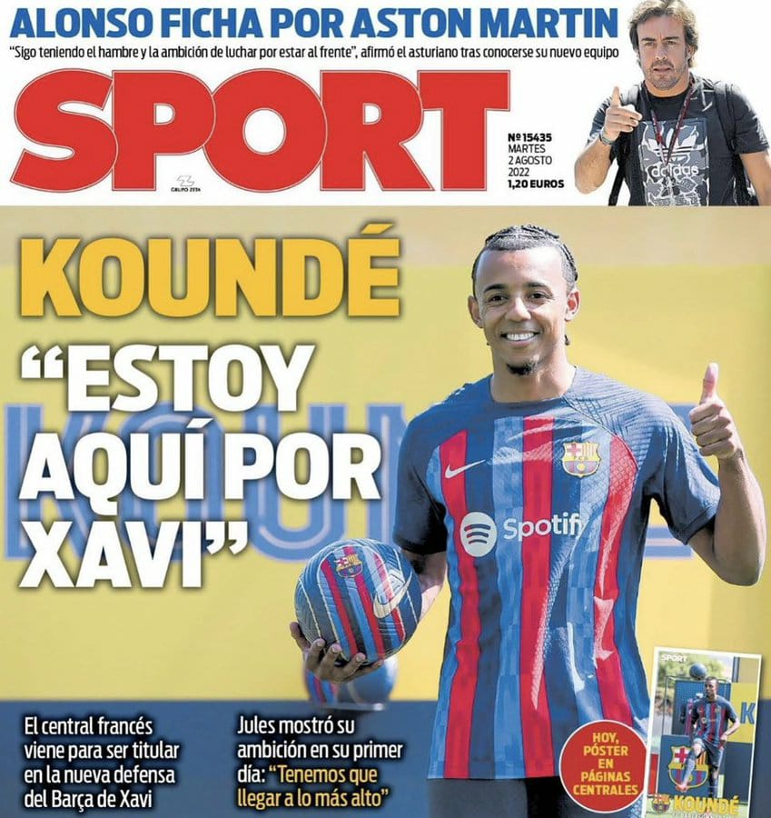 سلطت سبورت الضوء في غلافها على تصريحات جول كوندي خلال تقديمه كلاعب في صفوف برشلونة، حيث قال كوندي: أنا هنا من أجل تشافي.