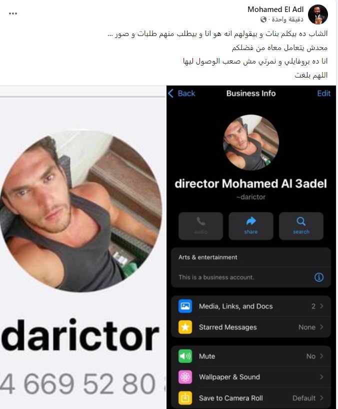 ماندو العدل يحذر من شاب انتحل شخصيته: بيكلم بنات ويطلب صورهم