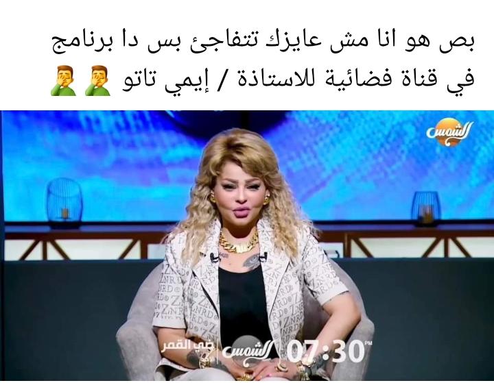 ونشر آخر صورة من البرنامج، وعلق عليها ساخرا: بص هو أنا مش عايزك تتفاجئ، بس ده برنامج في قناة فضائية للأستاذة إيمي تاتو.