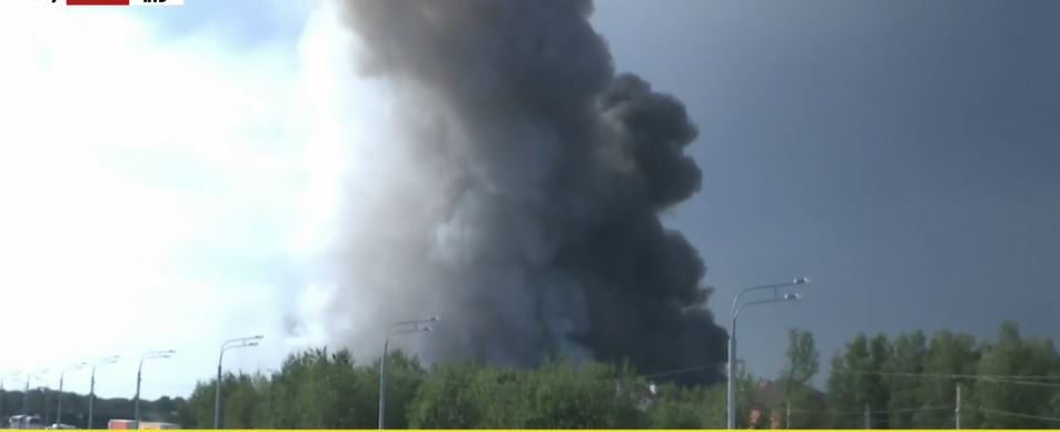 واندلع الحريق الضخم في أحد المستودعات بالقرب من العاصمة الروسية موسكو، وسط مساعي من قبل وزارة الطورائ للسيطرة على الحريق الذي بلغت مساحته أكثر من 50 ألف متر مربع.