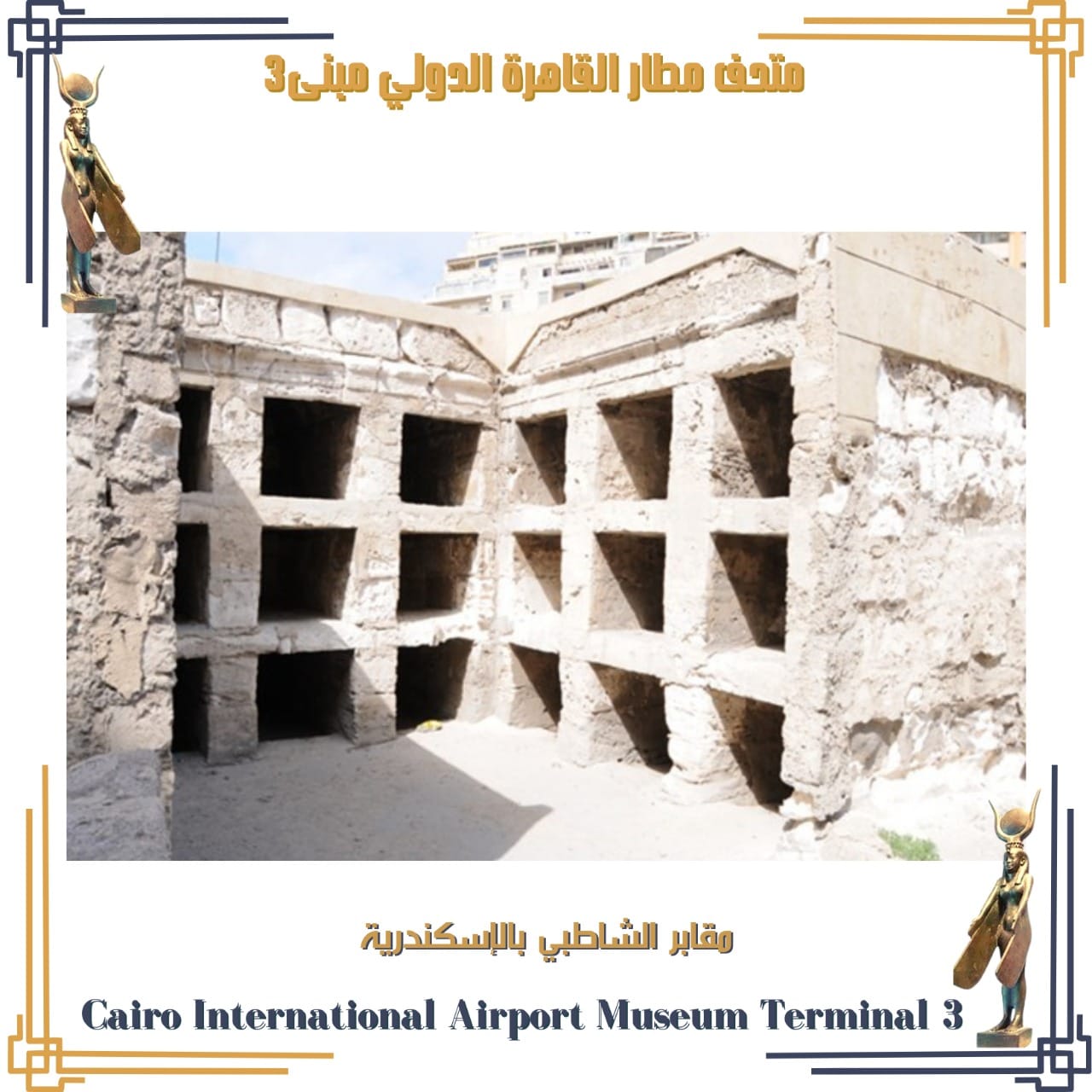 ونشرت إدارة متحف مطار القاهرة صورًا لمقابر الشاطبي بالإسكندرية، والمقابر خاصة بأسرة يونانية ثرية ثم تحولت إلى جبانة عامة بمرور السنوات تتكون من طابقين؛ الطابق العلوي فوق سطح الأرض ويتخذ شكل المنازل اليونانية، والطابق السفلي تحت سطح الأرض وهو عبارة عن مجموعة من الفتحات المنقورة في الصخر.