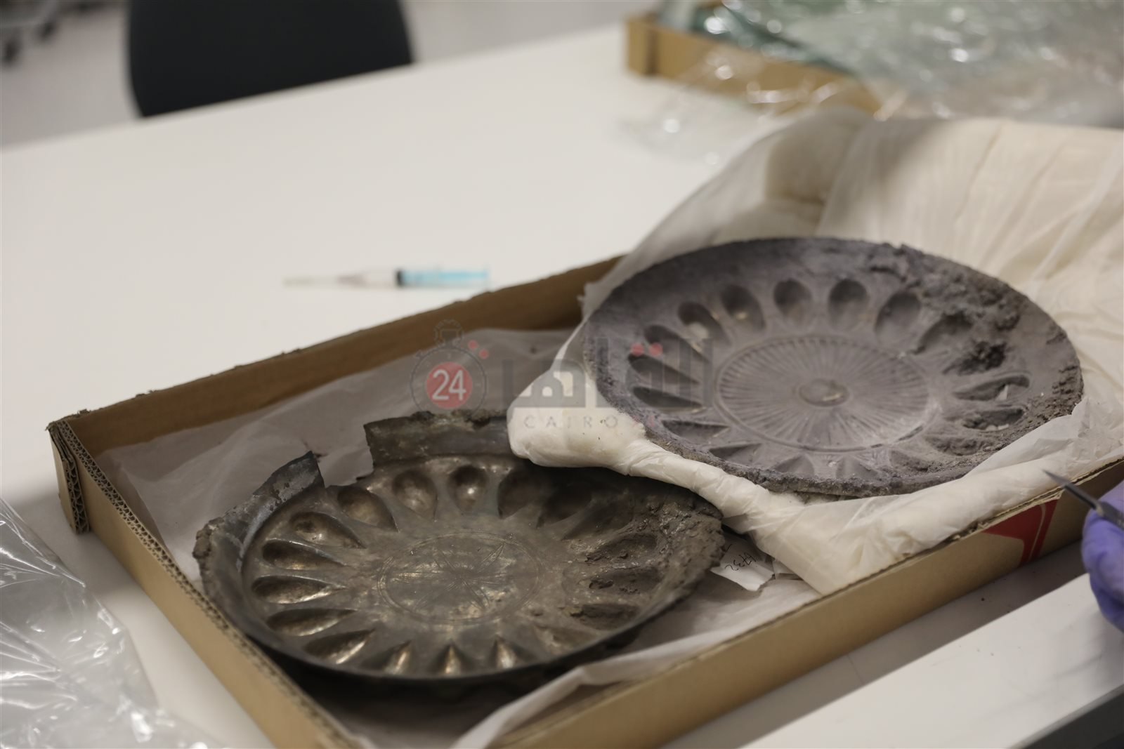 وأشار المصدر إلى أن هناك مجموعة من المعادن ومن بينها طبقين من الفضة يعودان إلى العصر المتأخر، مشيرًا إلى أنه قبل الترميم تم دراستهما قبل ذلك وتم عمل فحص بصري لهما.