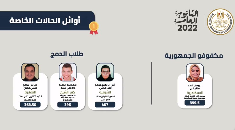 - أوائل الثانوية العامة 2022