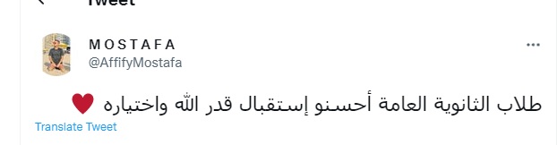 وغرد آخر: طلاب الثانوية العامة أحسنوا استقبال قدر الله واختياره، وكتب مغرد: يا رب نجحهم، مش لأجلهم، لأجل أهاليهم الغلابة اللي طلع عينهم في المصاريف طول السنة.