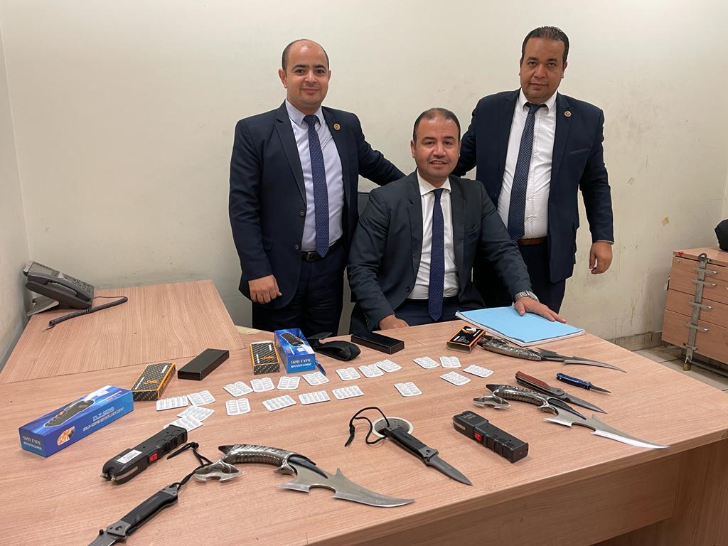 تمكن رجال الجمارك بالإدارة الرابعة بمبنى الركاب رقم ٢ بمطار القاهرة الدولي برئاسة وائل محمد إمبابي مدير الإدارة، من ضبط محاولة تهريب عدد من الأسلحة البيضاء والصواعق الكهربائية وكبسولات الترامادول المخدرة بالمخالفة لقانون الأسلحة والذخائر رقم 394 لسنة 1954 وقرار وزير الداخلية رقم 1300 لسنة 2019 وقانون مكافحة المخدرات رقم 182 لسنة 1960 وقانون الجمارك رقم 207 لسنة 2020 ولائحته التنفيذية رقم 430 لسنة 2021 وقانون الاستيراد والتصدير رقم 118 لسنة 1975 وتعديلاته.