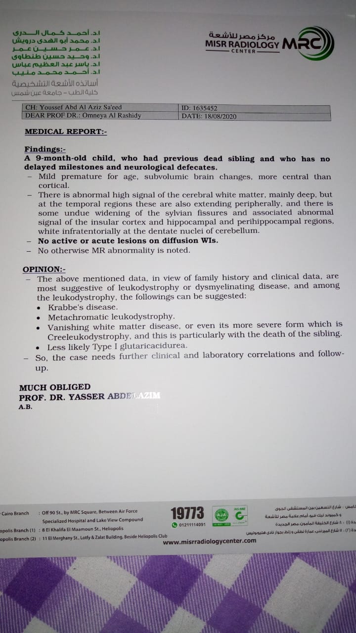 وأشار الأب إلى أنه من مدينة الإسماعيلية، والإجراءات الطبية للطفل كانت في القاهرة، إلا أنه لم يرى أي حالات مشابهة مصابة بالمرض.