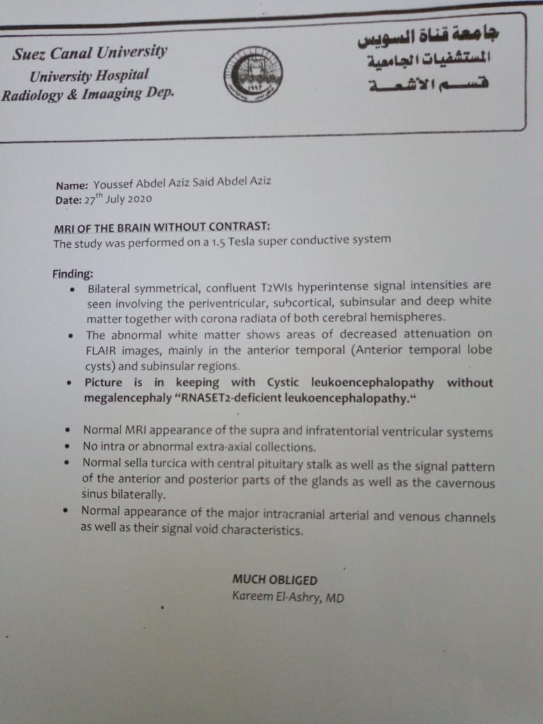وأضاف عبد العزيز، في تصريحات خاصة لـ القاهرة 24: اكتشفنا مرض يوسف وهو عنده 6 شهور، طلع عنده نقص في المادة البيضاء، ونقص في الأكسجين، مع تآكل في القشرة المخية.