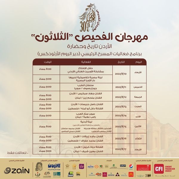 جدول حفلات مهرجان الفحيص بدورته الثلاثين