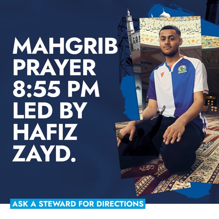 أعلن نادي بلاكبيرن روفرز الإنجليزي عبر حسابه الرسمي على موقع التواصل الاجتماعي تويتر، في بيان رسمي عن توفير مصلى للجماهير المسلمة في المباريات بداية من الجولة المقبلة لبطولة الدوري الإنجليزي الدرجة الأولى شامبيون شيب.