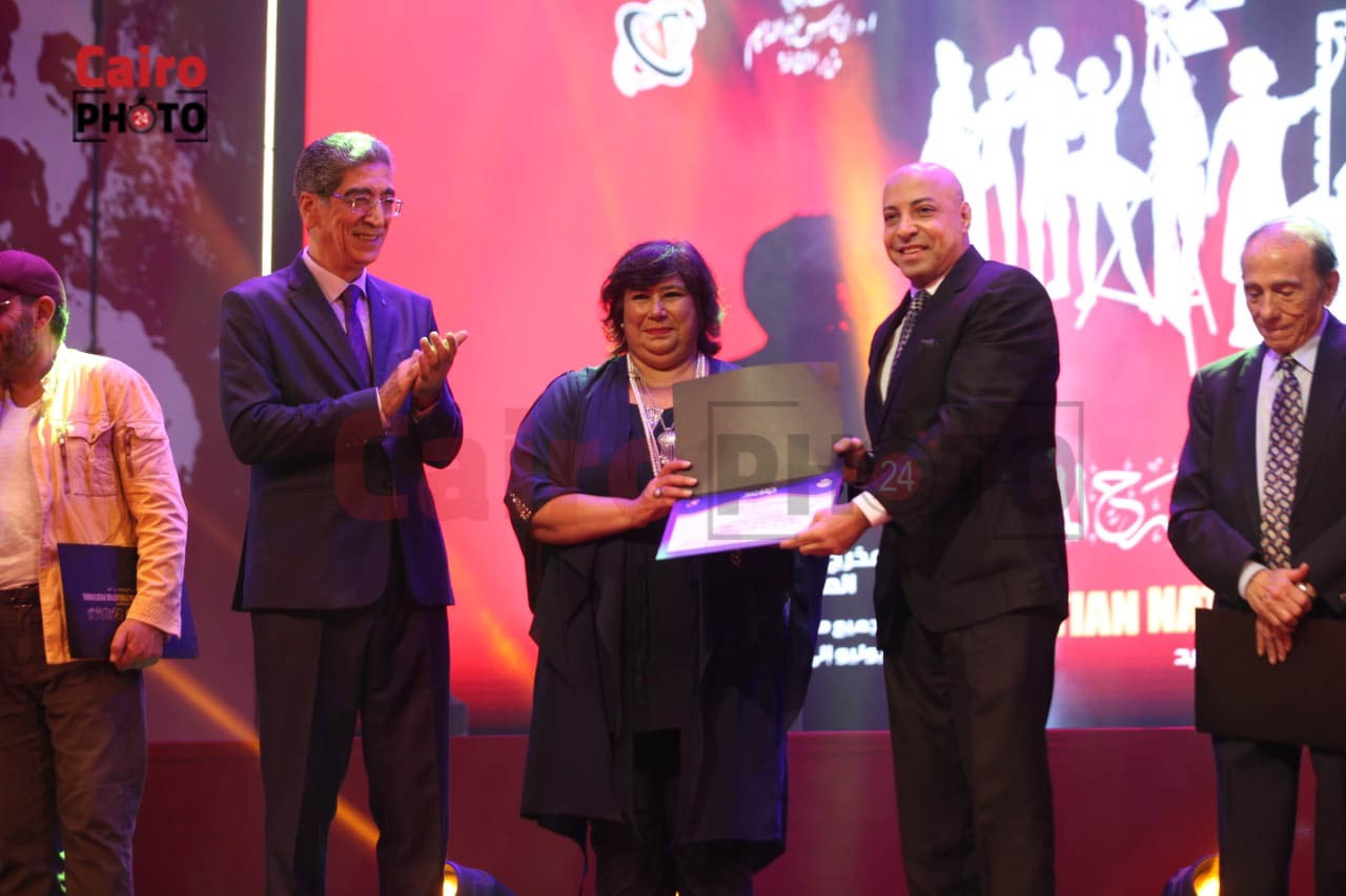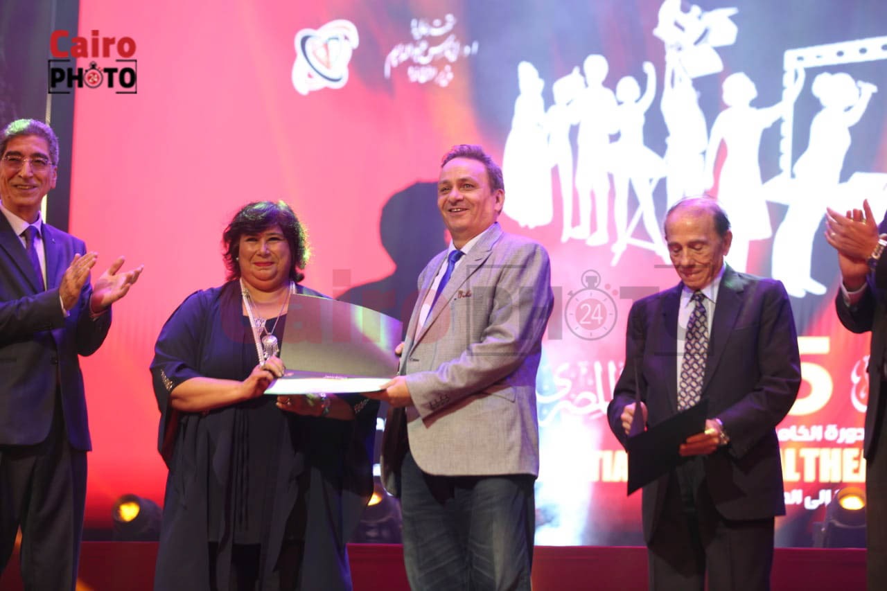 كرمت الدكتورة والفنانة إيناس عبد الدايم، وزيرة الثقافة، عددا من الفنانين بالدورة 15 من مهرجان القومي للمسرح المصري، بمشاركة الفنان القدير يوسف إسماعيل رئيس المهرجان، وإسماعيل مختار مدير المهرجان.