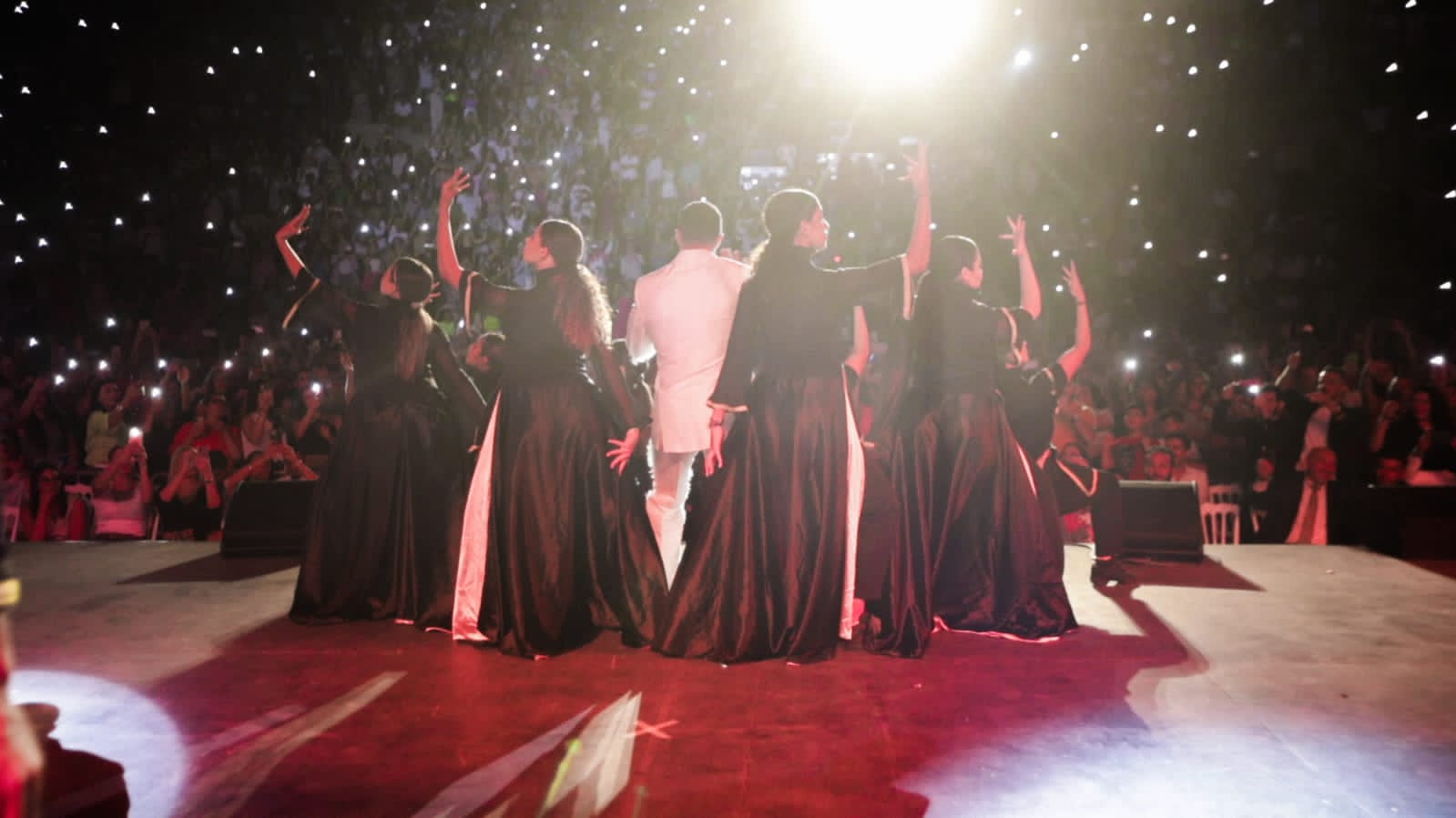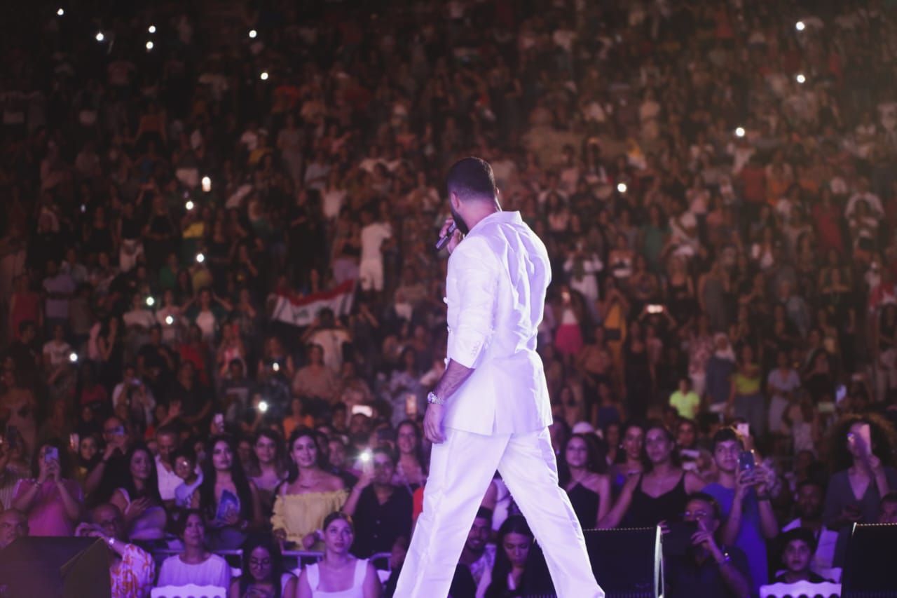 وحضر الحفل آلاف الأشخاص الذين ضاقت بهم مدرجات المسرح الأثري لحضور عرض وصفوه بالعالميّ، وبدأ الحفل على وقع أغنية ممكن، التي افتتحها سيف بلوحة استعراضية كبيرة ضمّت عشرات الراقصين، على وقع غناء وتفاعل الجمهور.