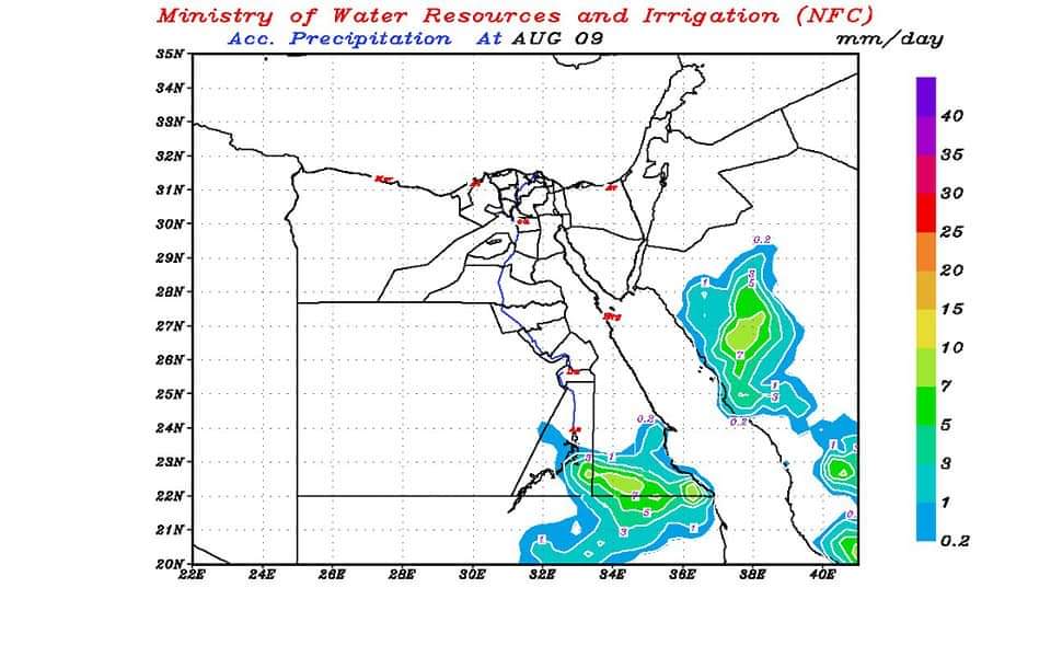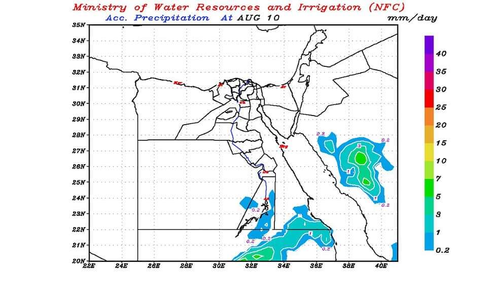 ولفت المركز التابع لوزارة الموارد المائية والري، إلى أن النتائج الأولية تشير إلى احتمال سقوط أمطار خفيفة يوم 11 أغسطس على جنوب البحر الأحمر.