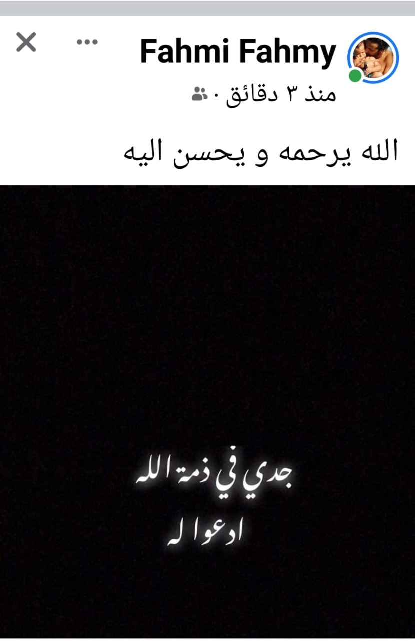 وكتب كريم فهمي، منشورًا عبر حسابه الشخصي بموقع فيس بوك، جاء فيه جدي في ذمة الله، الله يرحمه ويحسن إليه.
