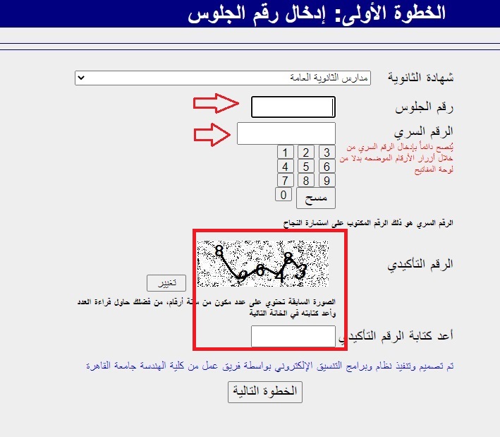 تتمثل الخطوة الأولى في تسجيل رقم الجلوس عبر موقع التنسيق الإلكتروني من هـنـا، وكذلك كتابة الرقم السري المكتوب على استمارة النجاح التي تستلمها من المدرسة، كما عليك أيضًا تسجيل الرقم التأكيدي الموجود كما هو موضح بالصورة في الأسفل، ولكن عليك قبل أي شيء تحديد مصدر الشهادة الثانوية سواء مدارس ثانوية عامة أو مدارس العلوم والتكنولوجيا، واحذر من اطلاع أي شخص على الرقم السري.