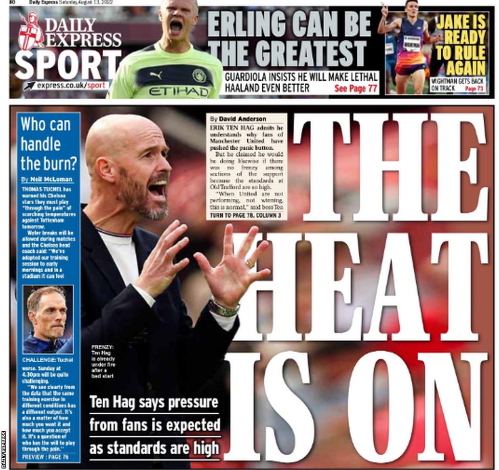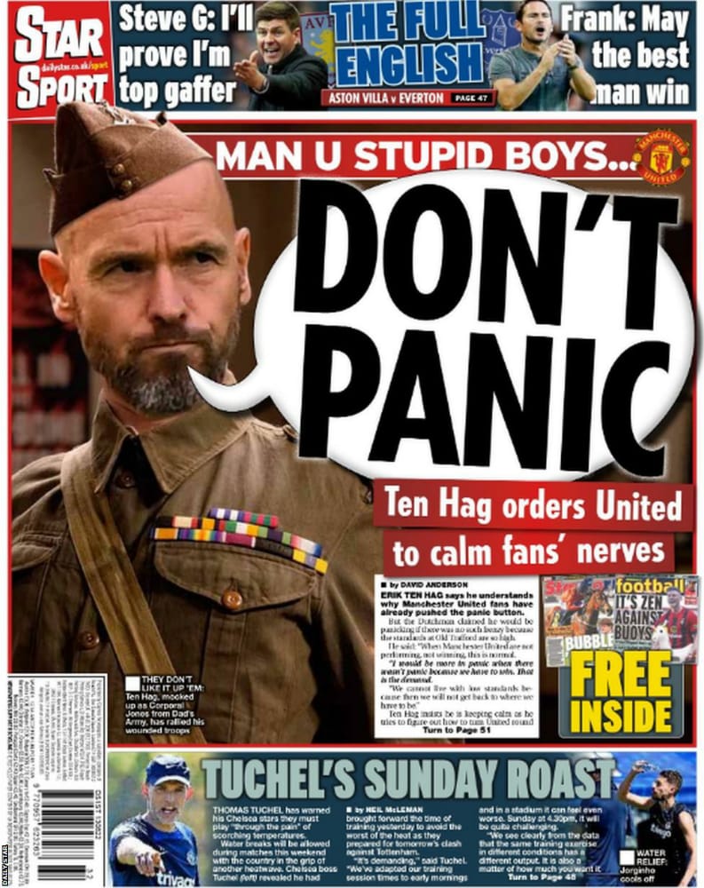 تصدر إريك تين هاج مدرب فريق مانشستر يونايتد غلاف صحيفة ستار سبورت لعدد اليوم، حيث عنونت بـ تين هاج يأمر بامتصاص غضب الجماهير، وذلك عقب الوقفات الاحتجاجية ضد ملاك مانشستر يونايتد.