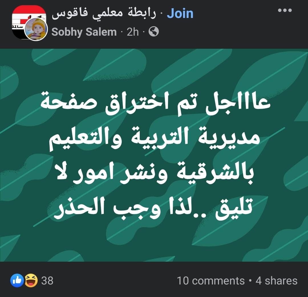 اختراق صفحة مديرية التربية والتعليم بالشرقية على فيس بوك
