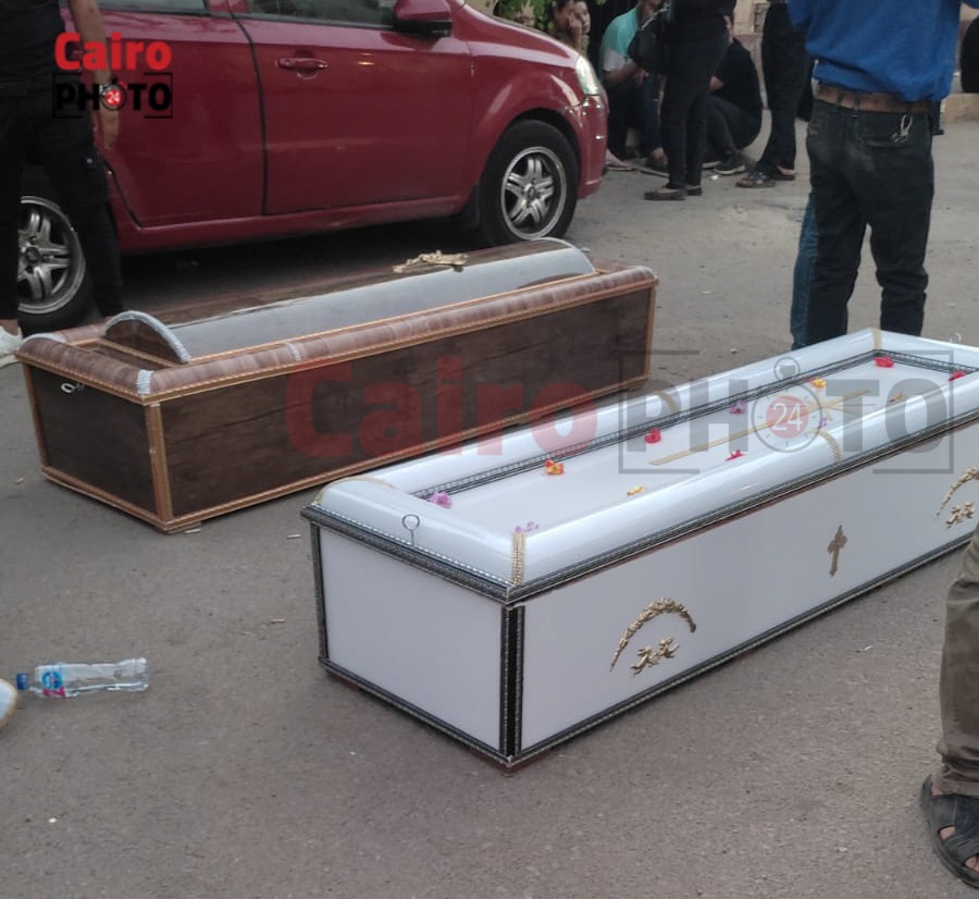 لحظة خروج جثمانين ضحايا كنيسة المنيرة استعدادا لصلاة الجنازة