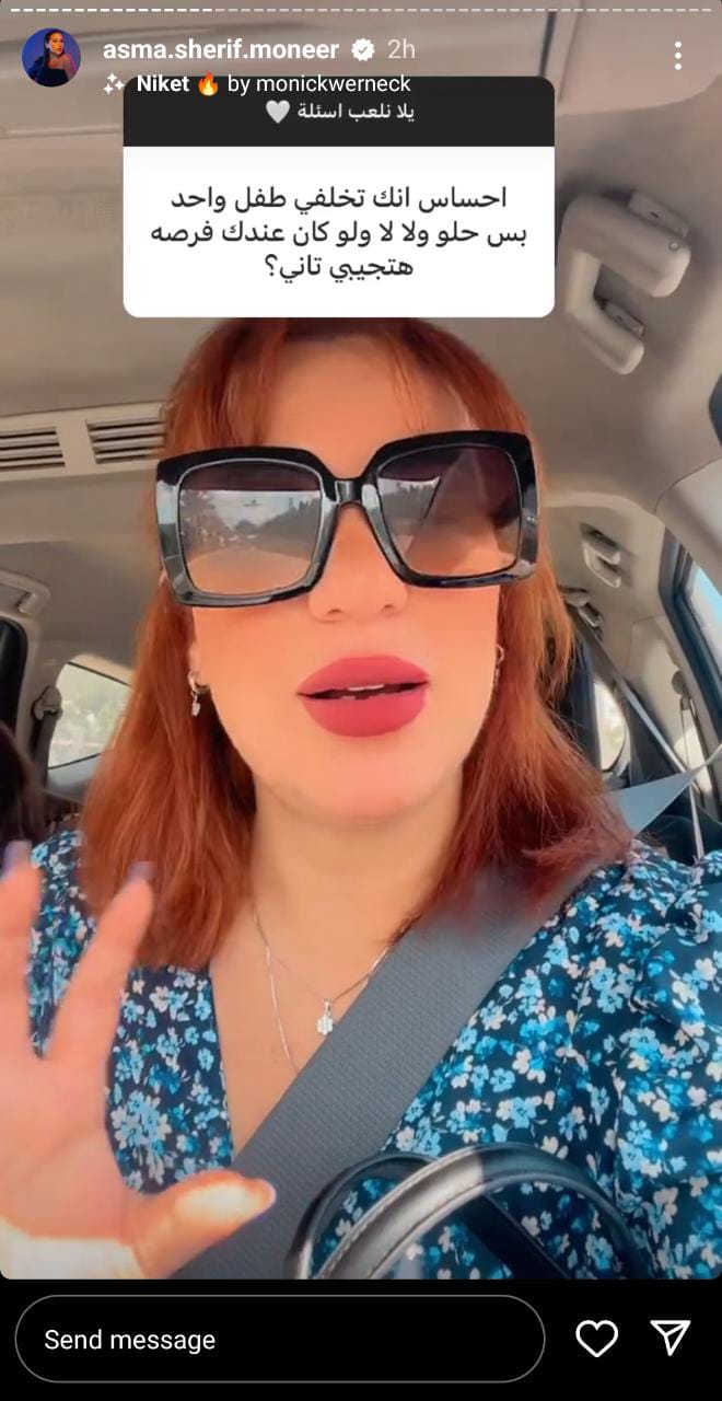 وتابعت أسما شريف منير عبر حسابها الشخصي بـ انستجرام، خلال ردها على أحد المتابعين وهو: إحساس أنك تخلفي طفل واحد بس حلو ولا لاء ولو كان عندك فرصة هتجيبي تاني؟