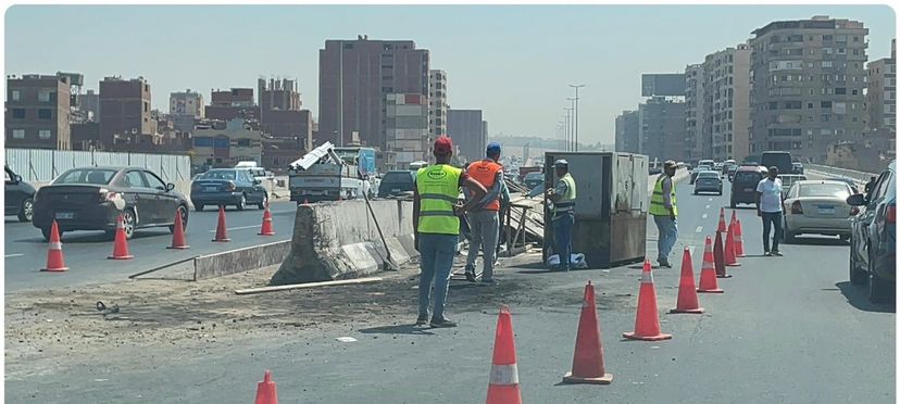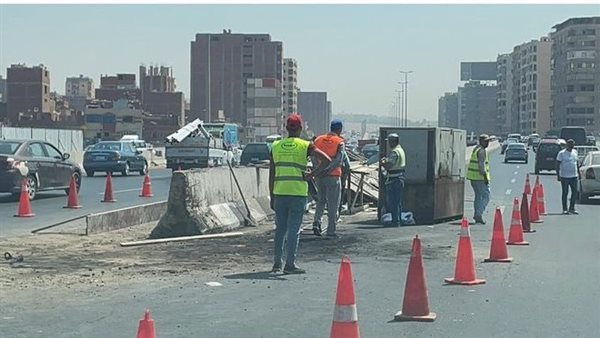 الطرق والكباري: وضع لوحات إرشادية بوجود حاجز خرساني وسط الطريق الدائري بالأوتوستراد