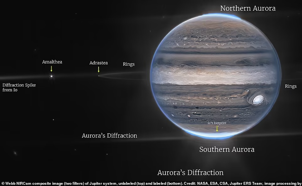 وقال دي باتر، أستاذ فخري بجامعة كاليفورنيا، إنه أمر رائع حقًا أنه يمكننا رؤية تفاصيل عن كوكب المشتري مع حلقاته، وأقماره الصغيرة، حتى المجرات في صورة واحدة.