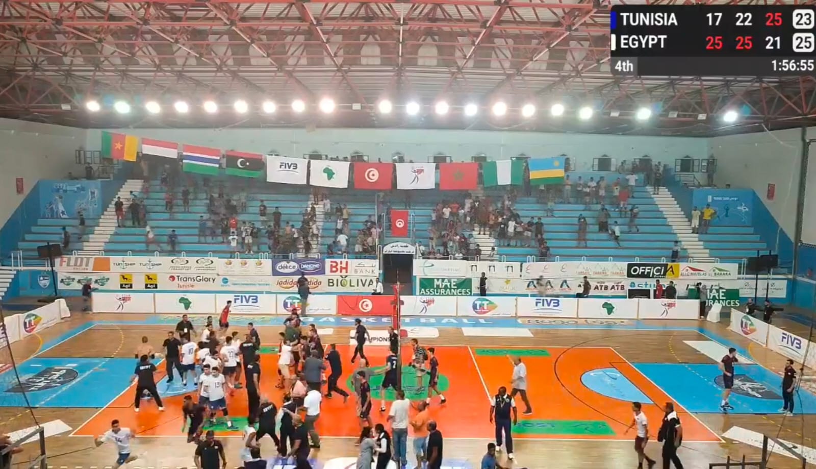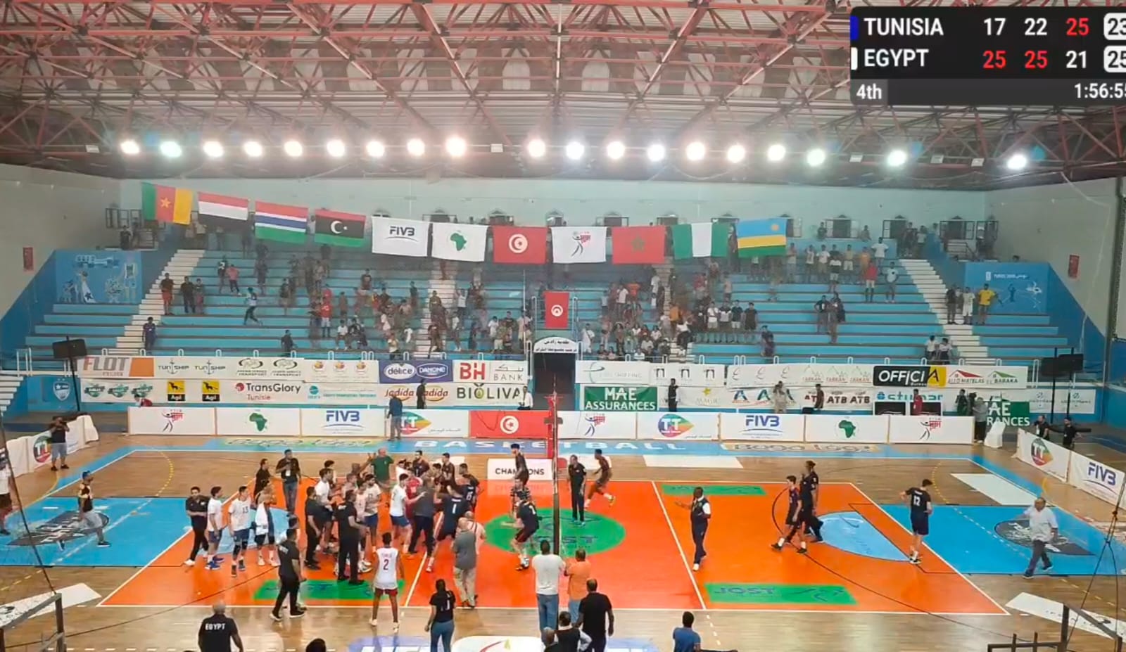 شهدت اللحظات ما بعد نهائي بطولة إفريقيا للكرة الطائرة تحت 21 سنة، اشتباكات بين لاعبي منتخب مصر ونظيره منتخب تونس، أثناء احتفالات منتخبنا الوطني باللقب.