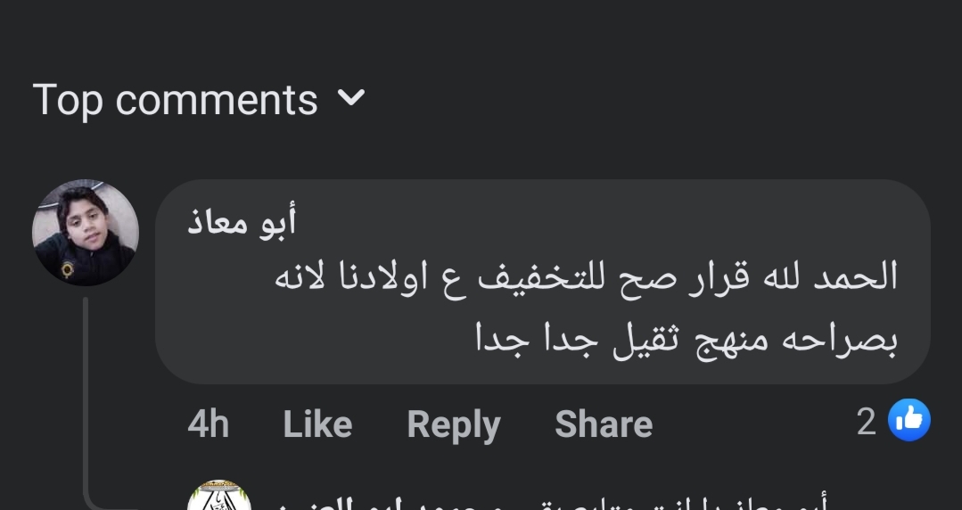 كان لازم يحصل دا من بدري لأن كان المنهج في منتهى الصعوبة وكنا بنعاني مع أولادنا.. هكذا علقت دينا حسن ولي أمر طالب بالرابع الابتدائي.