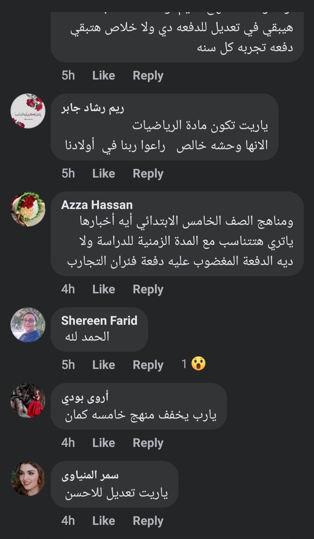 وفي السياق ذاته، أوضحت أميرة عبد الرحمن، ولي أمر طالب بالصف الرابع الابتدائي، أن هذا القرار سيجعل أولياء الأمور أقل خوفا على أبنائهم، لكونهم كانوا يعانون في العام الماضي، قائلة: القرارات الجديدة والمفاجأة ببقي قلقانة منها والكتب الخارجية اللي جبناها مفهاش التعديل دا.