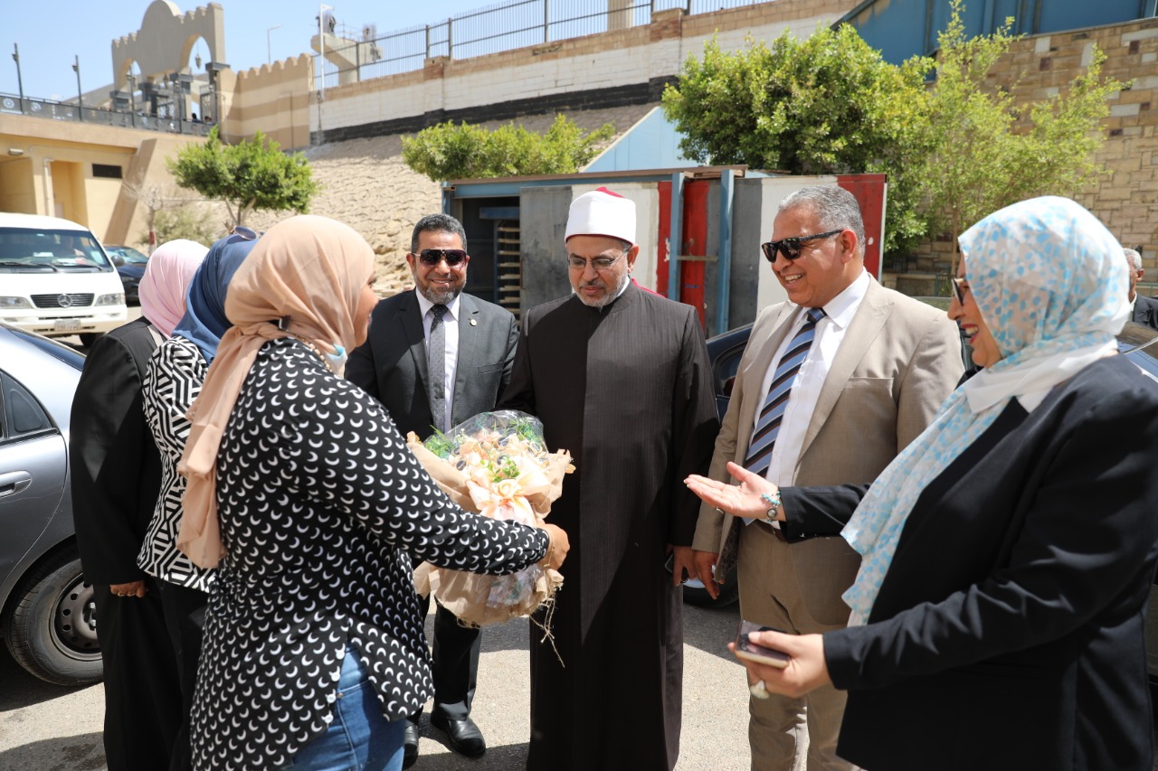 كان في استقبال رئيس الجامعة الدكتورة أميمة فهمي، عميدة كلية الدراسات الإنسانية للبنات جامعة الأزهر بالقاهرة، ومنال حافظ، مديرة الأمن الإداري بفرع البنات، ومديرة المدينة الجامعية للطالبات بمدينة نصر.