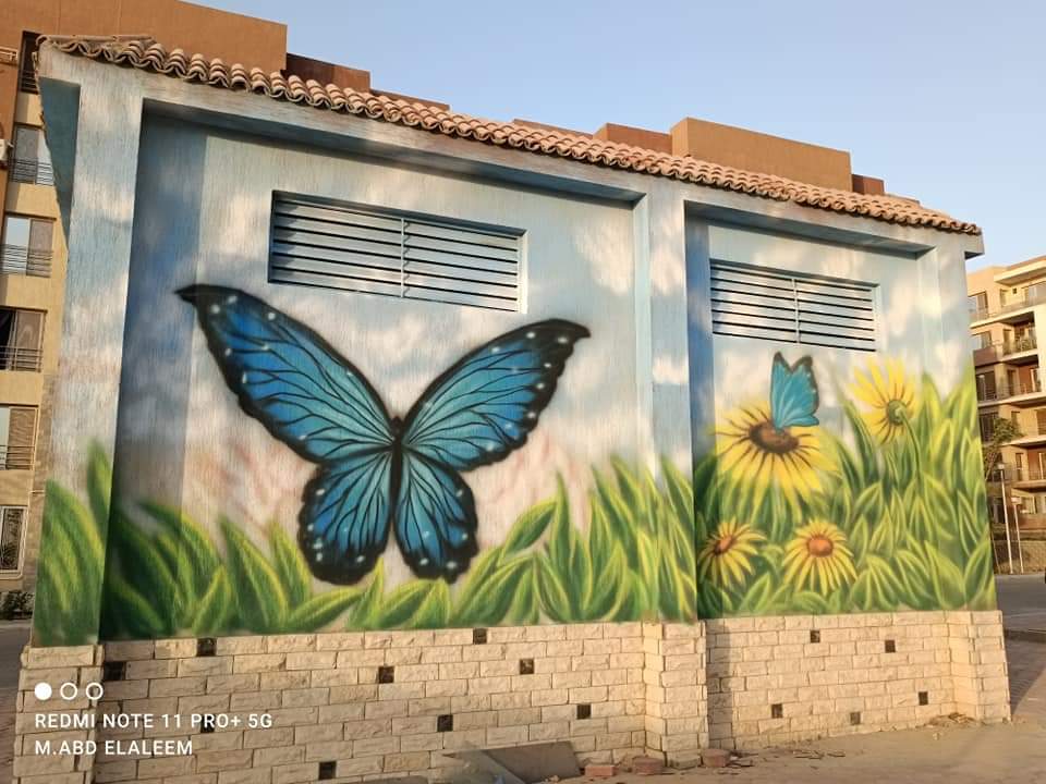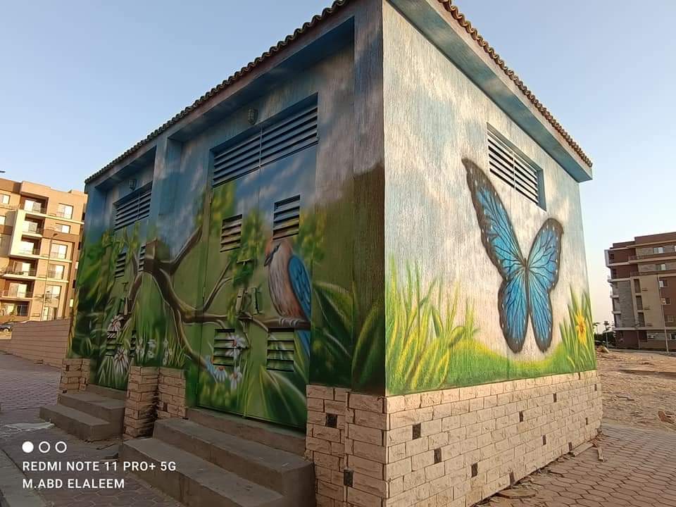 في لمسة جمالية تضيف للمدن الجديدة، حول سكان مشروع جنة الفاخر بمدينة العبور أكشاك محولات الكهرباء وصناديق القمامة إلي لوحات فنية مبدعة، بعدما تم التعاون فيما بينهم لإظهار المشروع باللمسات الفنية وحفاظًا علي المظهر العام.