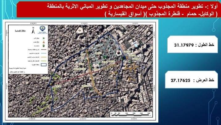 وأضاف رئيس حي غرب أسيوط، أن الأماكن التي سيتم تطويرها تتضمن منطقة المجذوب حتى ميدان المجاهدين، وتطوير المباني الأثرية بالمنطقة مثل الوكايل، وحمام، وقنطرة المجذوب، وأسواق القيسارية.
