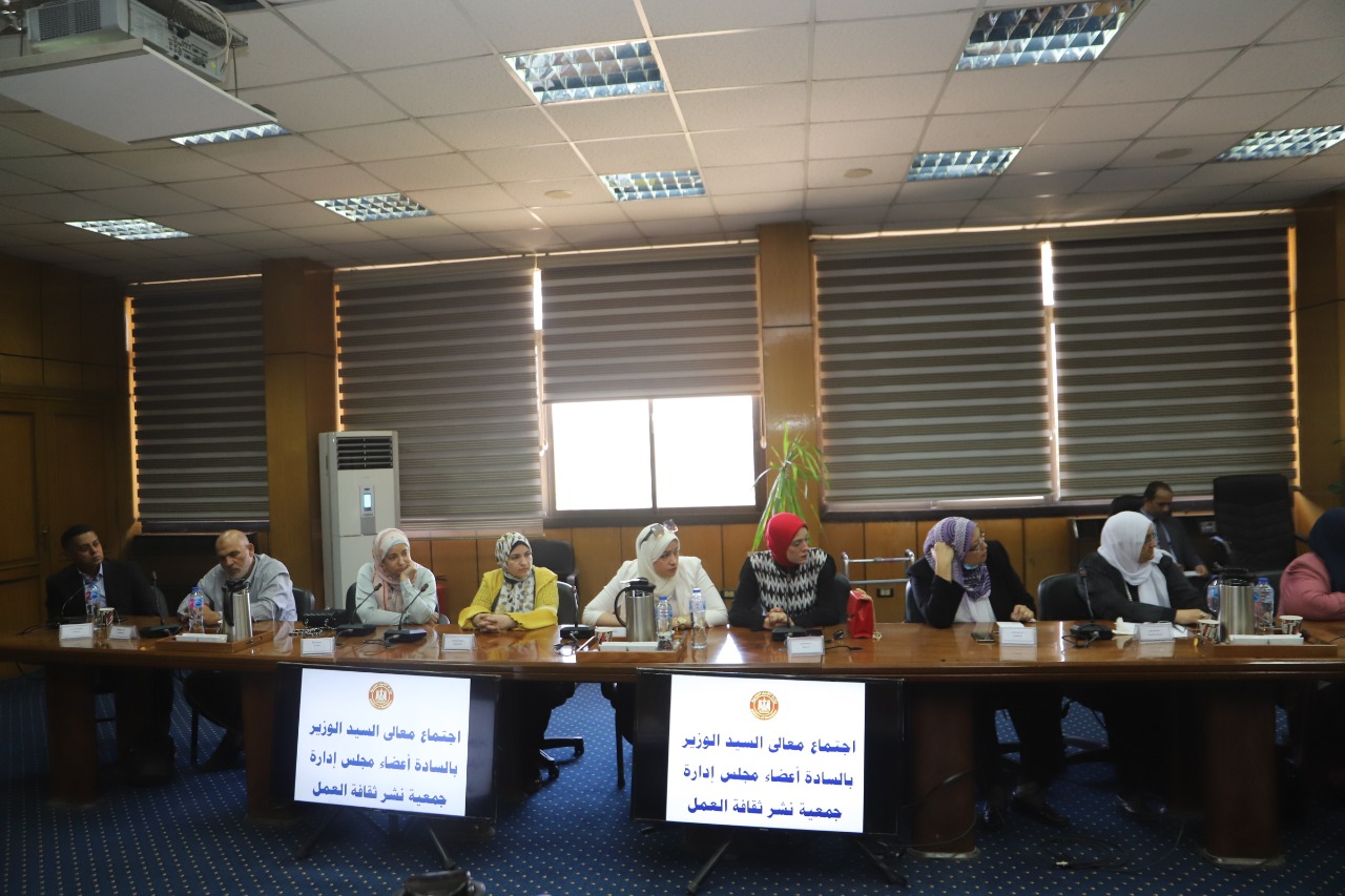 استمع وزير القوى العاملة حسن شحاتة، إلى العاملين بمجلة العمل الناطقة بلسان الوزارة من مجلس إدارة وصحفيين وإداريين، حيث عرض المتحدثون على الوزير التحديات التي تواجه طبيعة عمل المجلة، ورؤيتهم نحو النهوض والتطوير خلال الفترة المقبلة، لتتماشى مع التطورات الراهنة في عالم الصحافة والإعلام باعتبارها مجلة متخصصة في مجال العمل.
