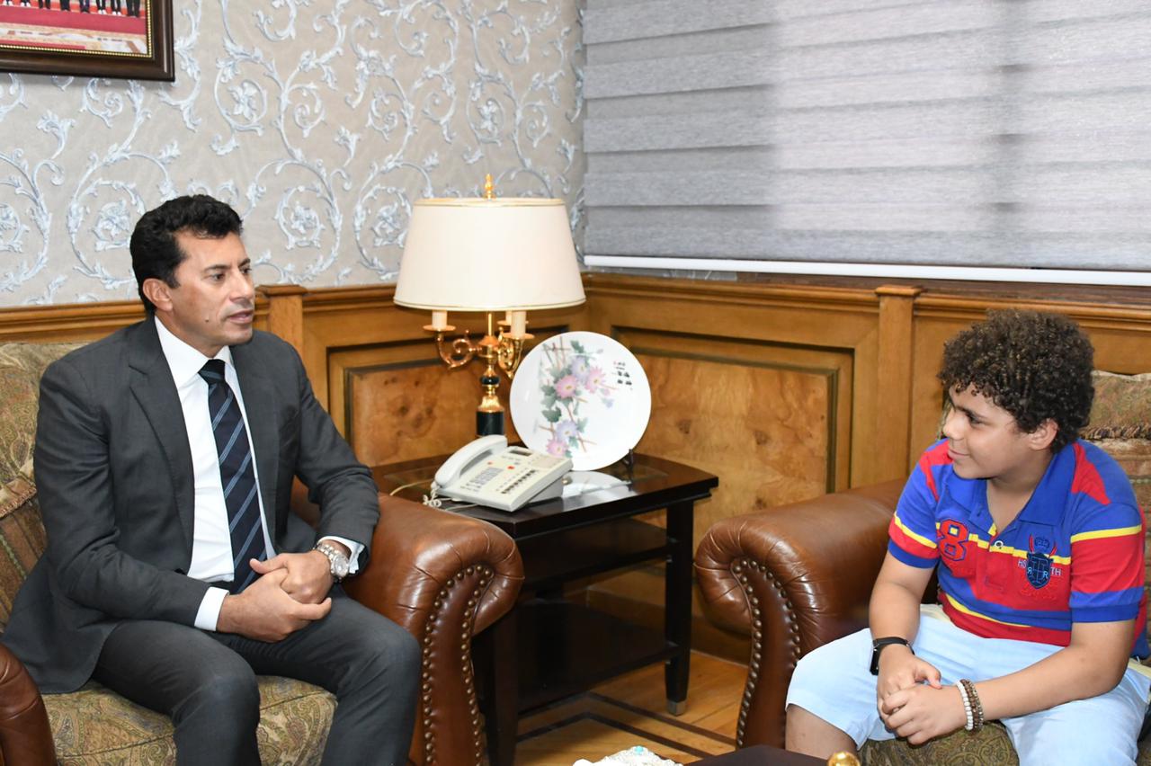 كرم الدكتور أشرف صبحى وزير الشباب والرياضة، اليوم الأحد، بديوان الوزارة كلا من "رحمة أمين أحمد" الطالبة بكلية التجارة جامعة الإسكندرية، وجوزيف مينا جبرة الطالب بالمرحلة الابتدائية.